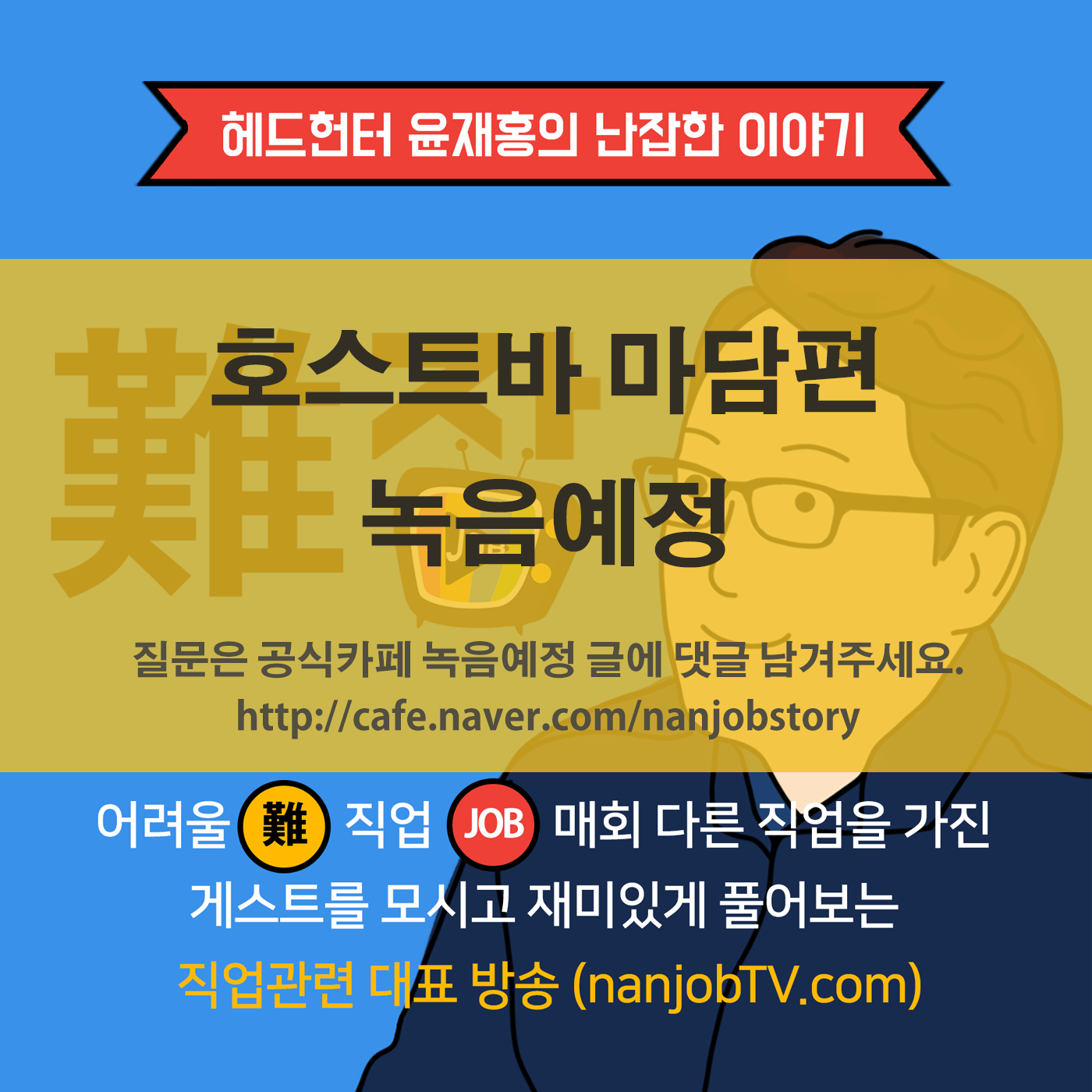 #헤드헌터 #윤재홍 #난잡한이야기 #어려울난 #직업잡 #난잡 #난잡TV #잡 #일 #job #work #직업 #창업 #취업 #취직 #진로 #체험 #직업체험 #진로체험 #직업추천 #이색직업 #취준생 #취업준비생 #연봉 #수입 #이직 #경력관리 #자기개발 #자기계발 #인생이야기 #인생스토리 #성공스토리 #감동스토리 #헤드헌터윤재홍