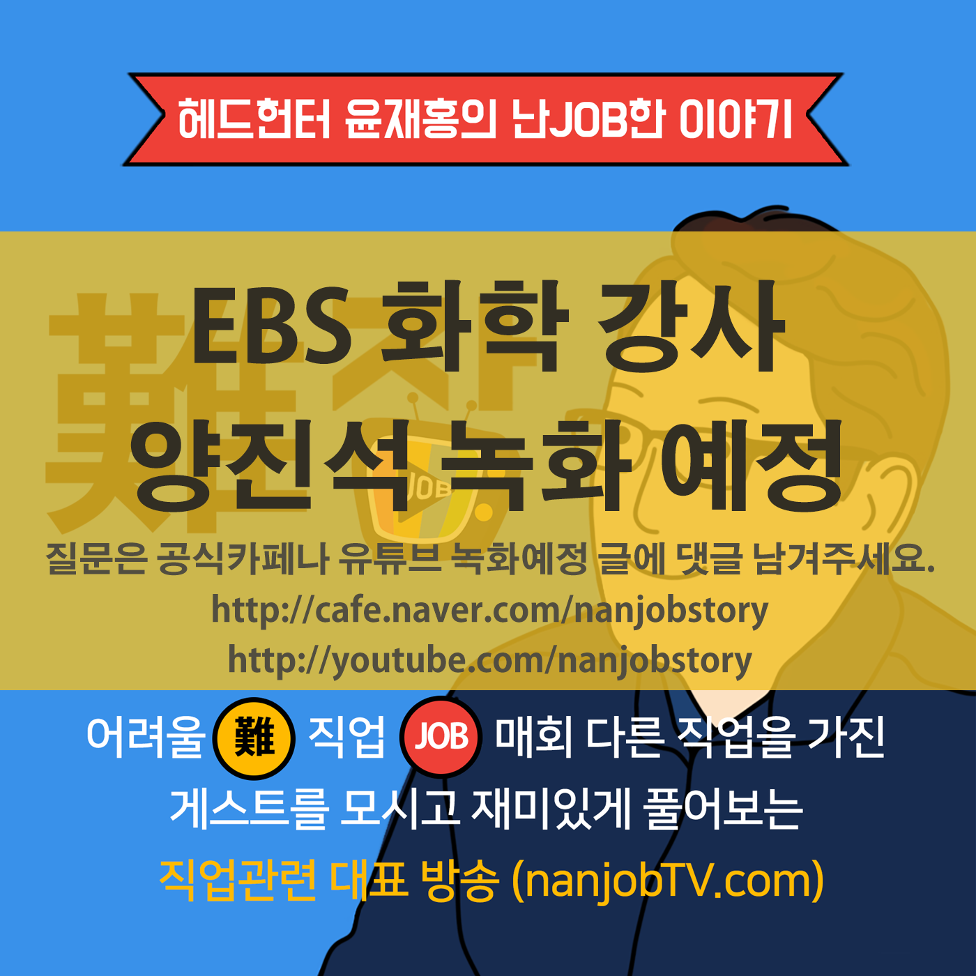 #헤드헌터윤재홍 #난JOB한이야기 #세상의모든직업 #사람을좋아하는헤드헌터 #EBS #화학강사 #양진석 #녹화예정