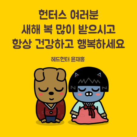 헌터스 여러분, 정말 다사다난했던 한 해가 저물어 가네요. 밝아오는 새해에는 여러분들이 뜻하신 바 모두 이루시고 항상 건강하고 행복하시기 바랍니다.