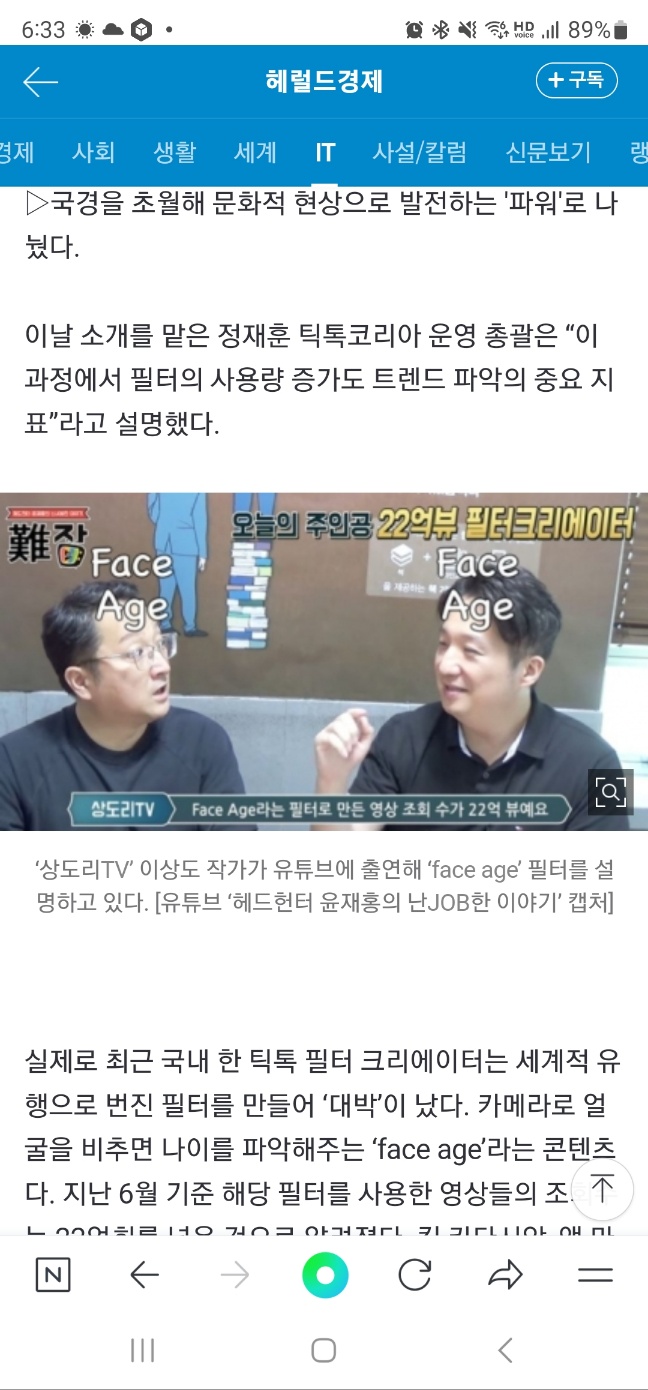 헌터스 여러분, 제 방송에 출연했던 틱톡 필터크리에이터 상도리TV(이상도)님이 헤럴드경제에 기사로 실렸네요. 관심있는 분들은 출연한 영상 시청바랍니다.