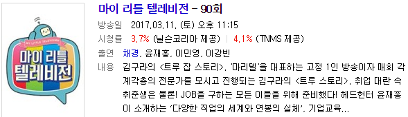 4. MBC 마이 리틀 텔레비전 90회(MLT-45) 김구라의 트루 잡 스토리 '헤드헌터 윤재홍'으로 출연