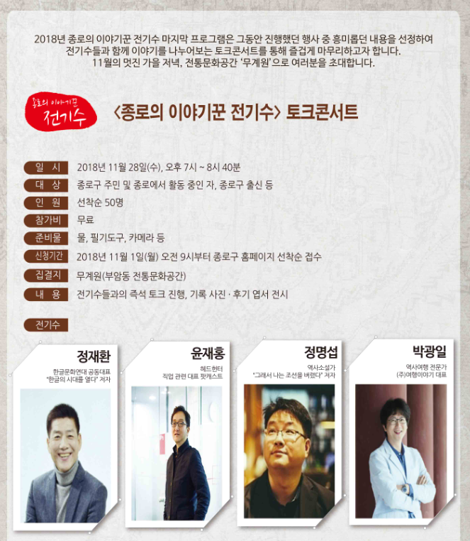 7. 종로구청 종로의 이야기꾼 전기수 프로그램 '2018 토크콘서트' 출연