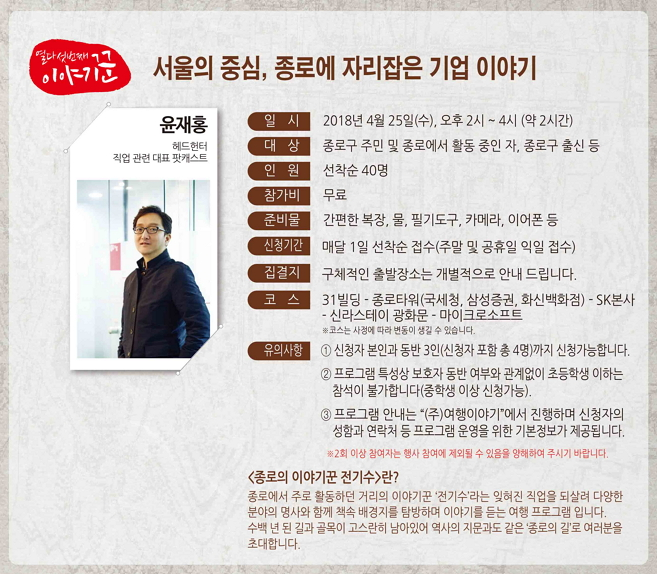 6. 종로구청 종로의 이야기꾼 전기수 프로그램 '서울의 중심, 종로에 자리잡은 기업 이야기' 진행