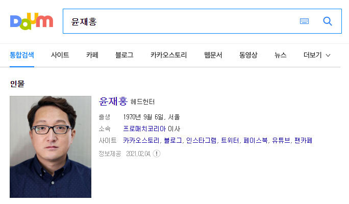 7. 고용노동부 한국직업정보원 워크넷 '헤드헌터 윤재홍'으로 방송 촬영, 인물 등록